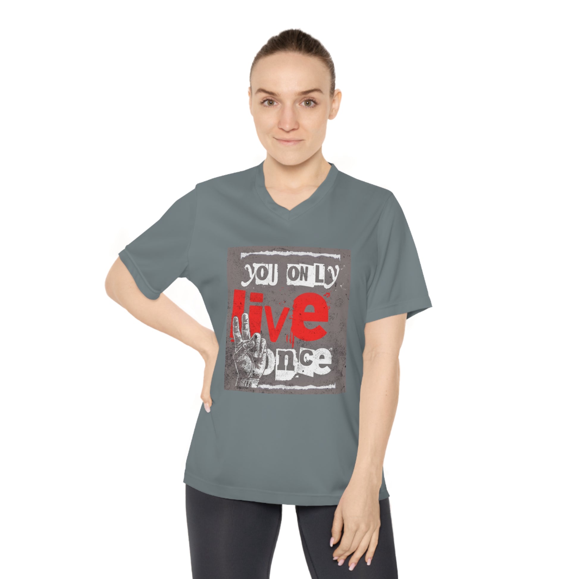 V Neck TShirt Ladies | Live Once Inspiration, Gift for Her, Activewear, Casual Style